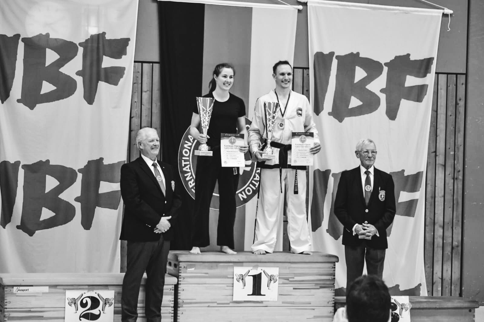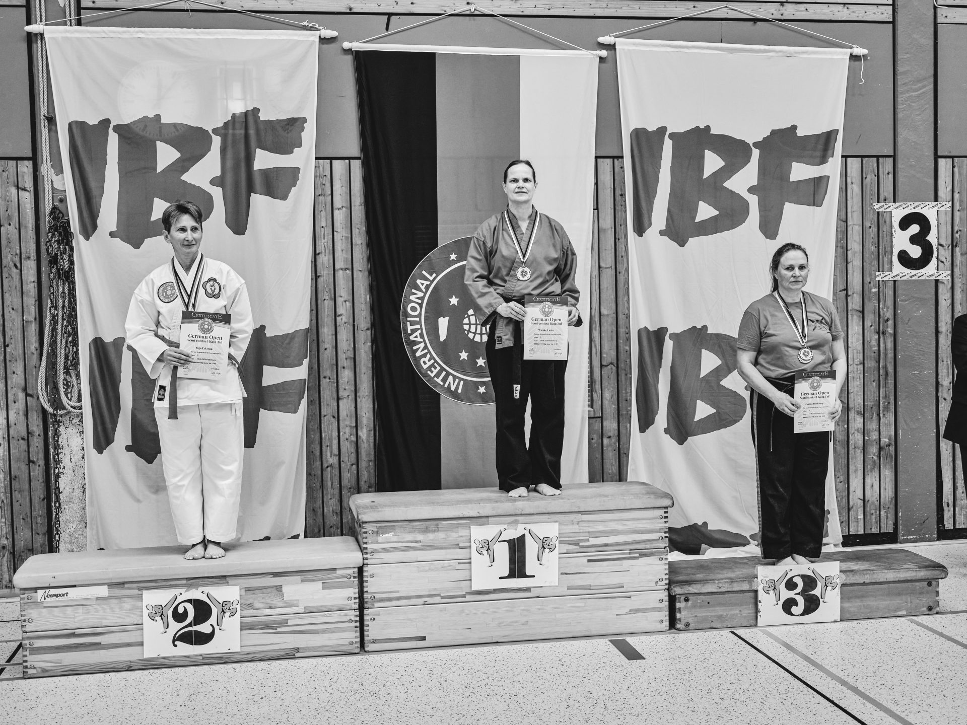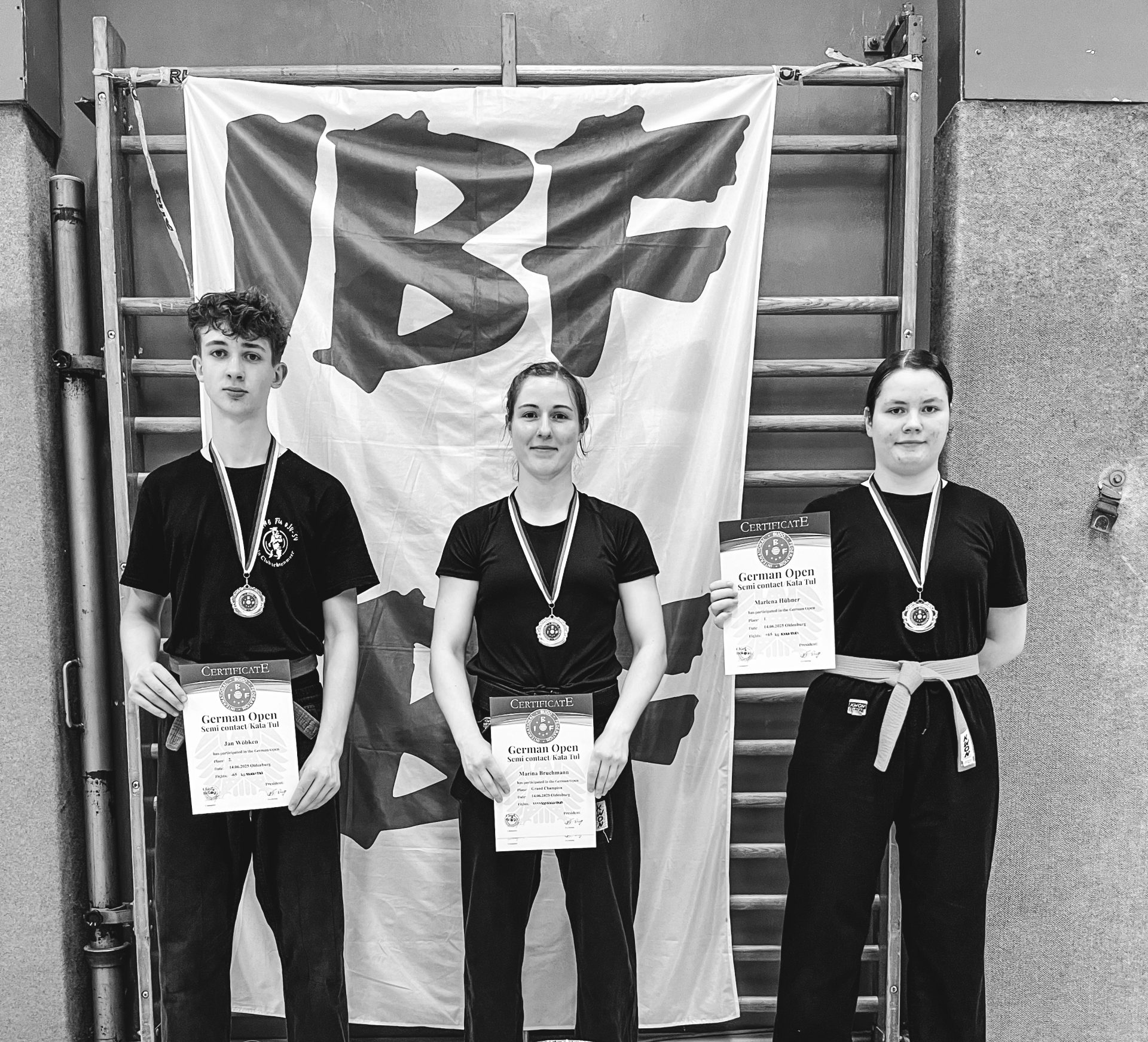 Marlena Hübner sicherte sich in der Kategorie Waffenkata Juniorinnen die Silbermedaille – eine äußerst knappe Entscheidung, die das hohe Niveau der Konkurrenz widerspiegelte. Roman Lantsev verpasste als Vierter im gleichen Bereich das Podest nur denkbar knapp. In den Waffenlosen Kata gab es zweimal Gold für unser Team: Wiebke Lucke gewann souverän in der Klasse Ü45 und Marina Bruchmann setzte sich in der Seniorinnenklasse durch.