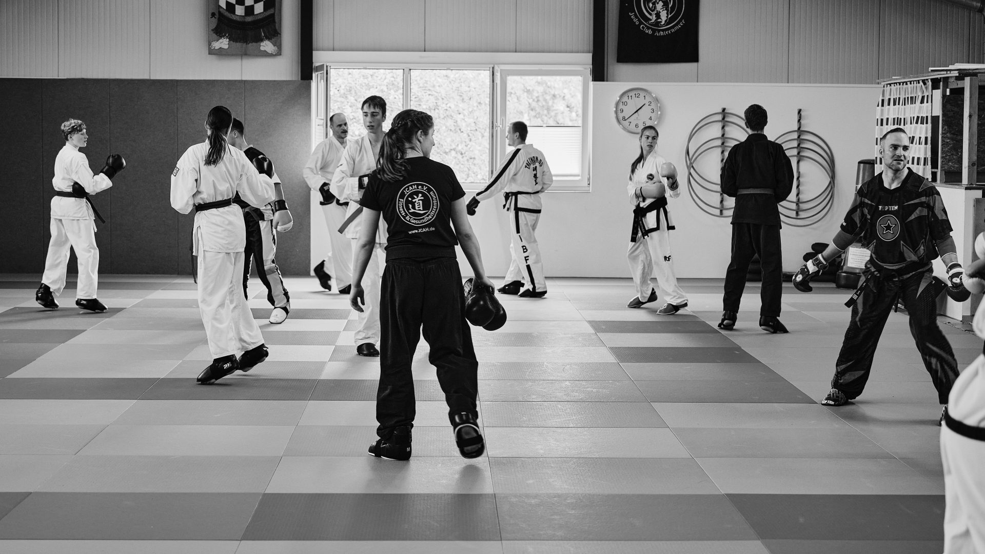Am vergangenen Samstag fand in unserem Verein das Kadertraining der IBF statt. Dieses diente insbesondere zur Vorbereitung auf die Europameisterschaft im Oktober in den Niederlanden. Marina durfte dieses Mal einen Teil des Semikontakt Trainings leiten. Marlena, Jan und Roman waren aus unserer Gruppe als Teilnehmer dabei. In insgesamt vier Stunden schweißtreibendem Training konnten sie sich nach dem Techniktraining auch im Rahmen des Sparrings mit den Sportlern zahlreicher anderer Vereine messen.